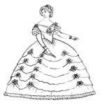 41-L Stella, c. 1863 Reproduced from Peterson's Magazine. The original was made of white organdie, figured with green leaves. The skirt has two ruffles around bottom and short puffed sleeves. Incl. sizes 6-16. Skill Level 3 $33 + $9 S&H |