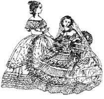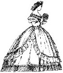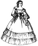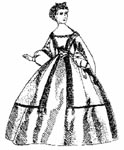 17-L Merilee, c. 1858 Reproduced from Harper's Monthly. Used for any occasion when full dress is not required. Best made of taffeta. The corsage is half-high, closely fitting and with round waist. The skirts are double and very full, with the under skirt short in front so as to display the slippers. Incl. sizes 6-16. Skill Level 3 $27 + $8 S&H |