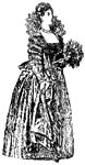 the big-hipped silhouette characteristic of the period. Modest bum