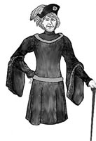 petticoat. Full overskirt with pocket, open at front. Bodice has