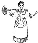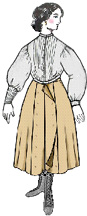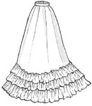 trimmings. Longer, narrower cut to correspond with the fashions of the