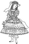 pink ruche of blue silk, put on in festoons around the bottom of the skirt.