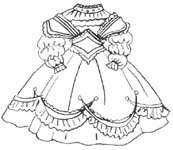 embroidery on white cambric & trimmed with blue satin ribbon. Sleeves are