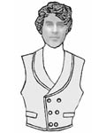 ![]() 20-M Single-Breasted Vest This wedding vest, c. 1852, features a shawl collar and has a padded chest. Sizes 38-44 Skill Level 2 $20 + $8 S&H |