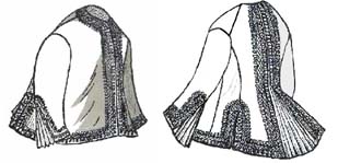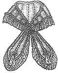 Made of cashmere or silk, trimmed with black velvet ribbon