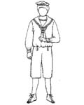 knit stockinette, a miniature replica of a man's naval uniform. The sailor's