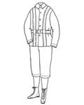Norfolk jacket of navy blue cloth. Belt around waist is